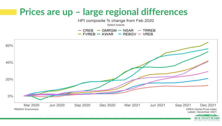 The forecast for Real Estate Market 2022 is more prone to error than at any time in recent history because of the range of possible government actions – returning to work rather than working from home, interest rates, changes in home buying and selling rules… and the list goes on. So take any forecasts with a healthy grain of salt! For what it’s worth, here’s what the Real Estate Board of Greater Vancouver economists forecast:
